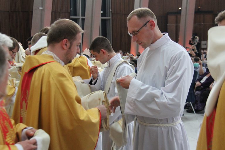 Diakoni przyjęli święcenia w przeddzień Bożego Ciała, co jeszcze bardziej podkreśla ich związek z Eucharystią. – Jesteście dla niej ustanowieni, jako jej słudzy – mówił.