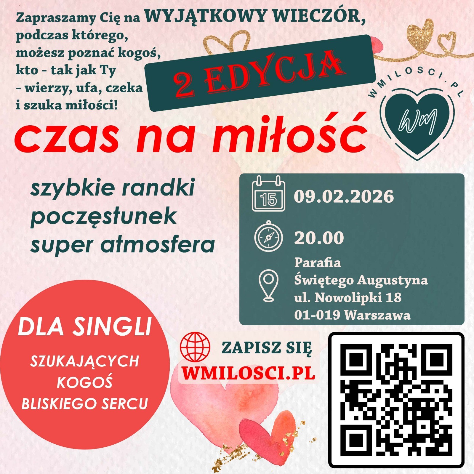 „Czas na miłość”. Spotkanie dla singli szukających kogoś bliskiego sercu