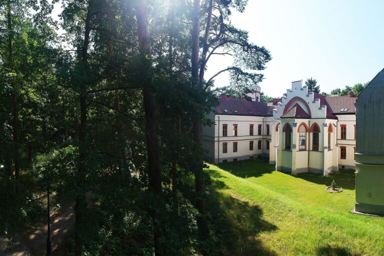 „Dobry Zakątek” w Konstancinie położony jest w urokliwym parku nad rzeką Jeziorką, a jego okolicę cechuje uzdrowiskowy mikroklimat.