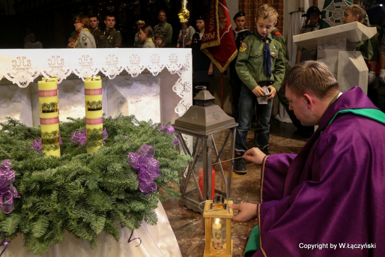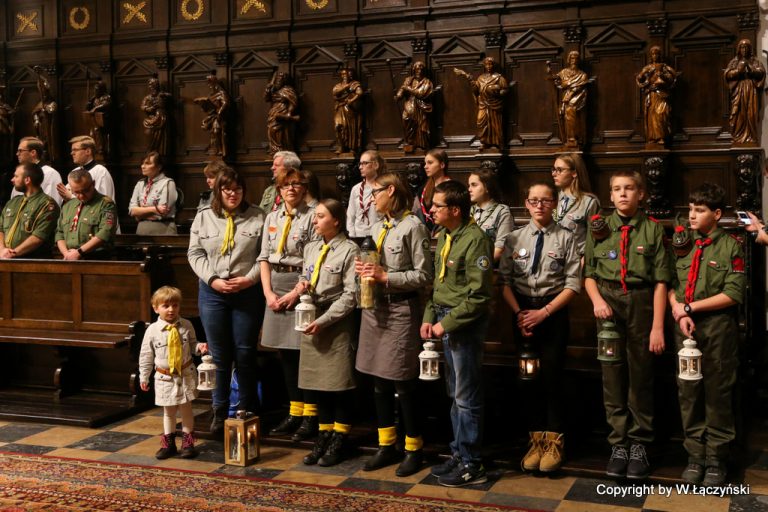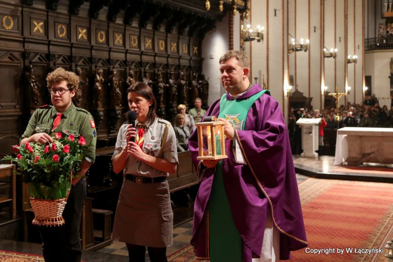Betlejemskie Światełko Pokoju już w Warszawie. Harcerze przekazali je kard. Nyczowi w archikatedrze