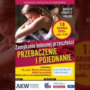 Wykład na temat „Zamykanie bolesnej przeszłości. Przebaczyć i pojednać się” poprowadzą ks. dr Marek Dziewiecki i red. Rafał Porzeziński. Cykl „Duchowość dla Warszawy” organizuje Akademia Katolicka w Warszawie (dawny Papieski Wydział Teologiczny)