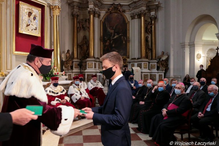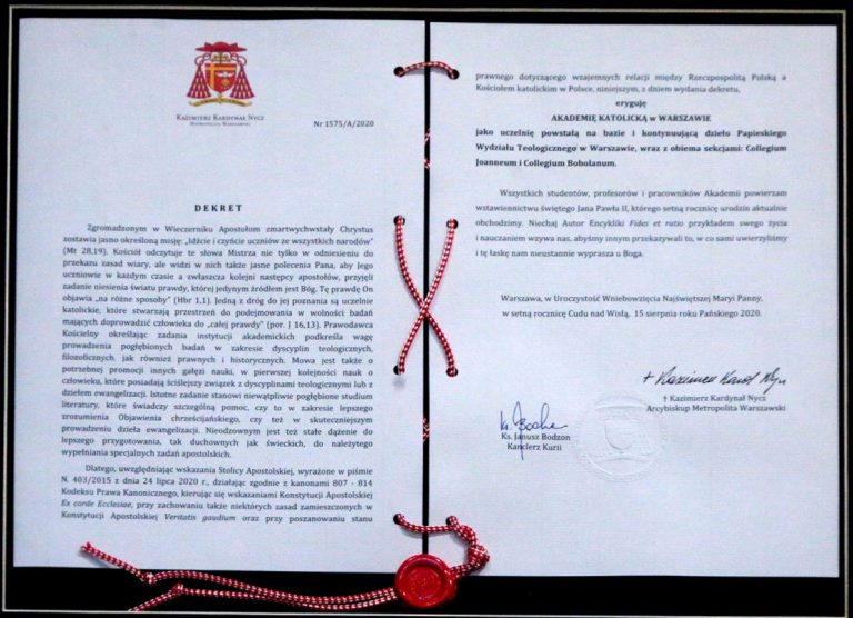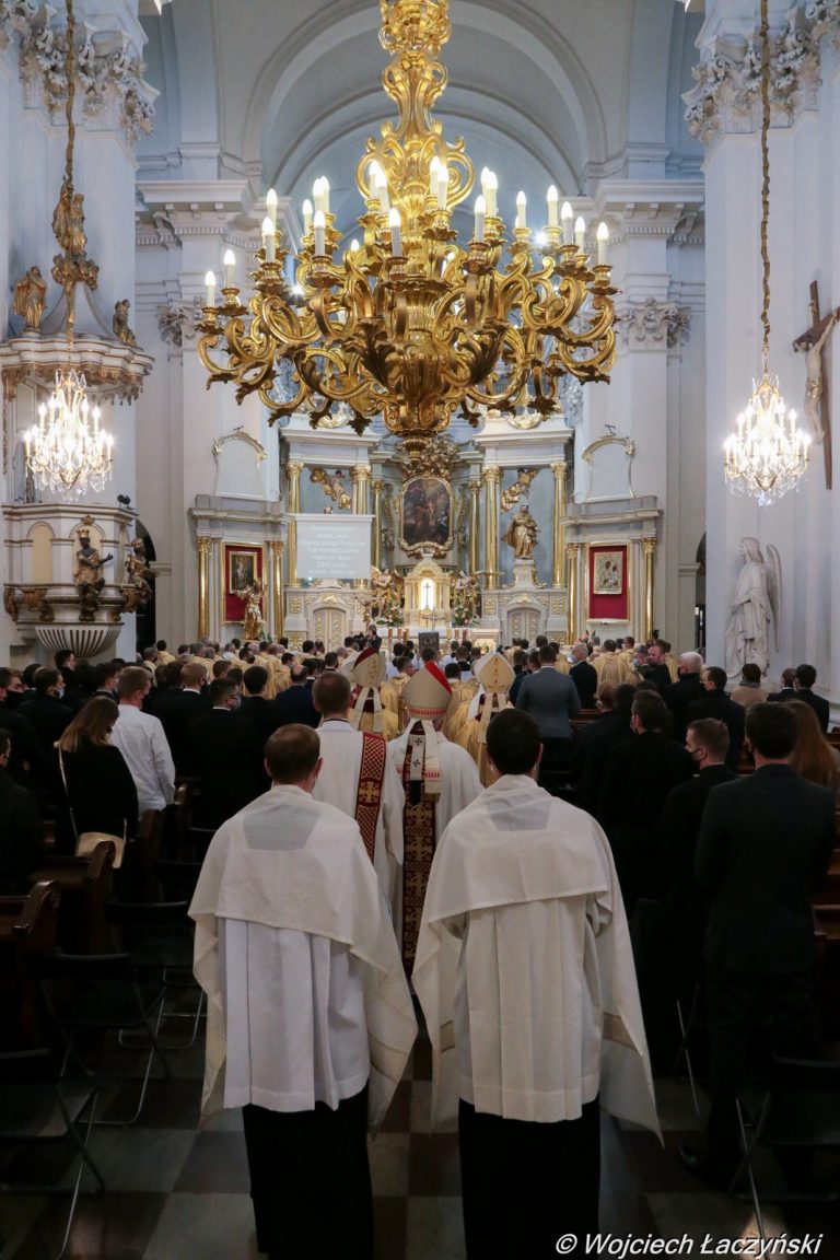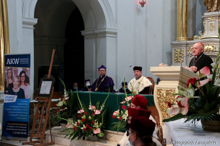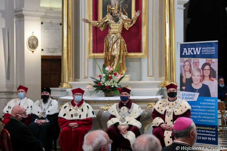 Fotorelacja z inauguracji roku akademickiego 2020/2021 8 października na Akademii Katolickiej w Warszawie. Uroczystość rozpoczęła się Mszą świętą pod przewodnictwem kard. Kazimierza Nycza, potem miała miejsce część akademicka W południe nową uczelnię zaprezentowano też dziennikarzom podczas konferencji prasowej w Domu Arcybiskupów Warszawskich