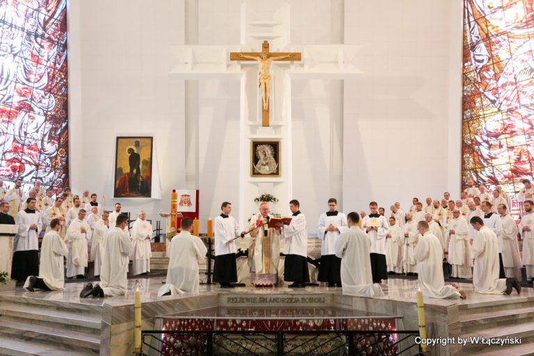 W Sanktuarium św. Andrzeja Boboli w Warszawie 13 maja 2017 roku kard. Nycz udzielił święceń diakonatu sześciu klerykom z zakonu jezuitów