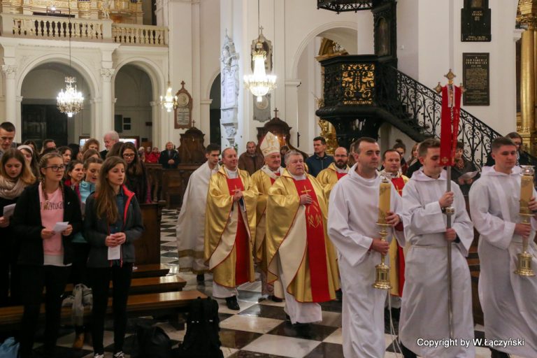 Kard. Kazimierz Nycz przewodniczył Eucharystii dla młodzieży wieczorem 28 kwietnia w bazylice Świętego Krzyża.