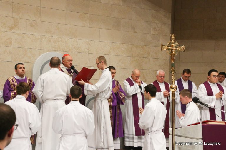 Kard. Nycz udzielił posługi akolitatu i lektoratu w Archidiecezjalnym Seminarium Misyjnym „Redemptoris Mater” ♦ Ponad 40 lat temu papież Paweł VI określił rolę posługi akolitatu oraz lektoratu ♦ Akolita wspiera diakona i usługuje kapłanowi m.in. w wypełnianiu czynności liturgicznych ♦ Lektor wypełnia funkcję czytania Słowa Bożego