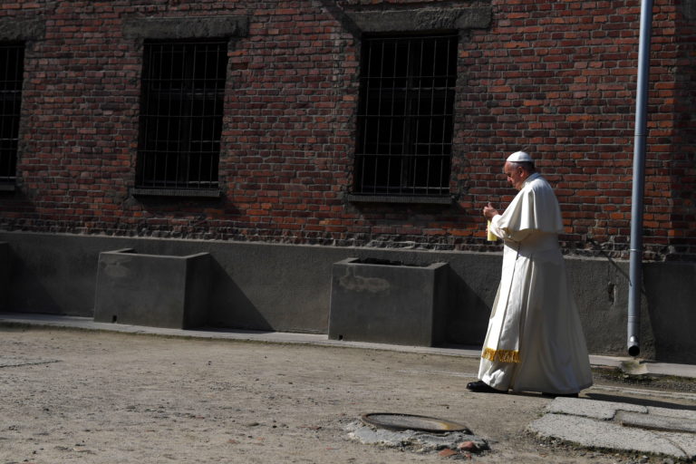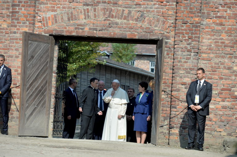 Ojciec Święty przybył na teren byłego niemieckiego obozu koncentracyjnego Auschwitz-Birkenau. Spotkał się m.in. ze "Sprawiedliwymi wśród narodów świata".