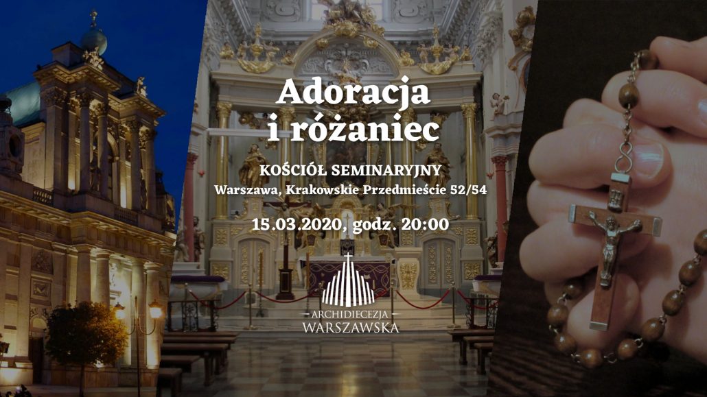 Adoracja Najświętszego Sakramentu a następnie modlitwa różańcowa. O godz. 20.00 z kościoła seminaryjnego zostanie przeprowadzona transmisja online. Dziś jeszcze testowo, od jutra codziennie. Zachęcamy do włączenia się we wspólną modlitwę