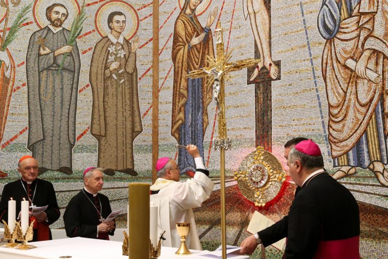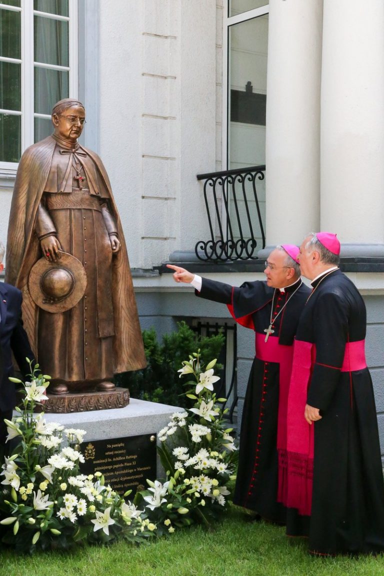 Pomnik pierwszego nuncjusza apostolskiego w Polsce abp. Achillesa Rattiego odsłonięto 6 czerwca, dokładnie w 100. rocznicę odnowienia stosunków dyplomatycznych między Polską a Stolicą Apostolską • Poświęcenia pomnika dokonał abp Edgar Peña Parra, substytut w Sekretariacie Stanu, który następnie poświęcił mozaikę "Ukrzyżowanie i chwała świętych” w kaplicy nuncjatury • Na ręce nuncjusza apostolskiego w Polsce przekazał kielich - dar papieża Franciszka, jako znak jego bliskości z Kościołem w Polsce