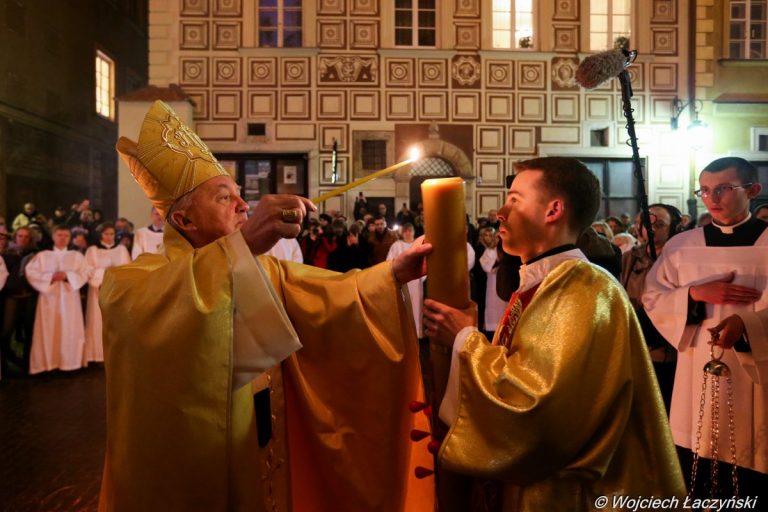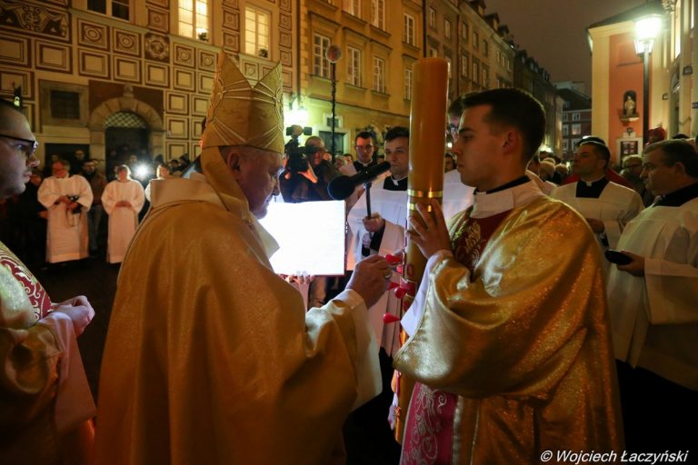 Tej najważniejszej liturgii w roku kościelnym przewodniczył w archikatedrze warszawskiej kard. Kazimierz Nycz • Złożyły się na nią liturgia światła, liturgia słowa, liturgia chrzcielna oraz liturgia eucharystyczna • Na zakończenie Wigilii Paschalnej ulicami Starówki przeszła procesja rezurekcyjna
