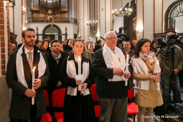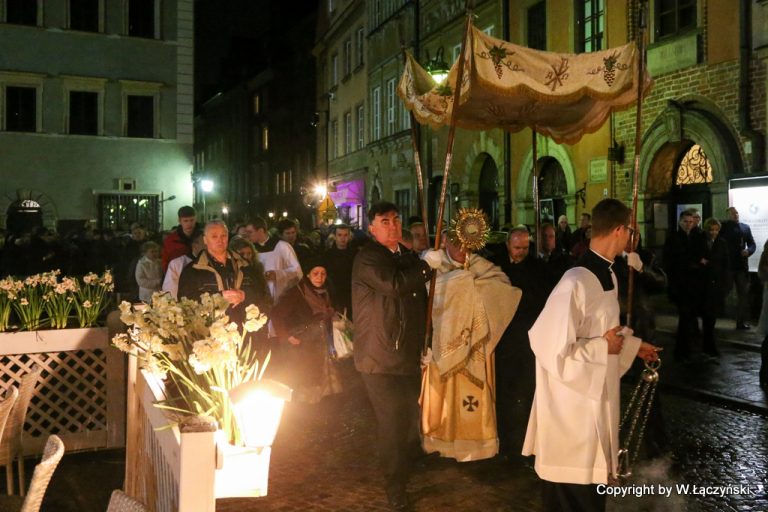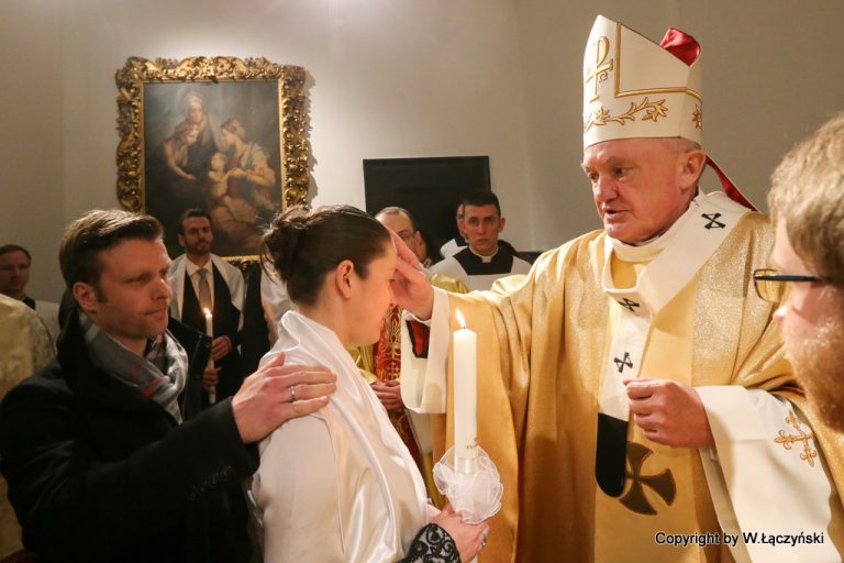Fotoreportaż Wojciecha Łączyńskiego z liturgii Wigilii Paschalnej ♦ Podczas Liturgii dziewięciu dorosłych przyjęło sakramenty inicjacji chrześcijańskiej: Chrzest, Bierzmowanie i Eucharystię ♦ Wigilię zakończyła procesja rezurekcyjna uliczkami warszawskiej Starówki