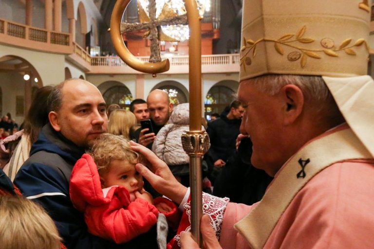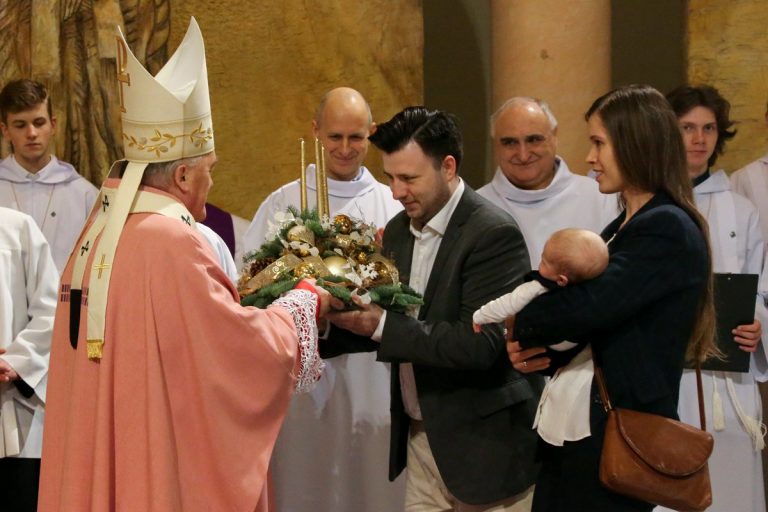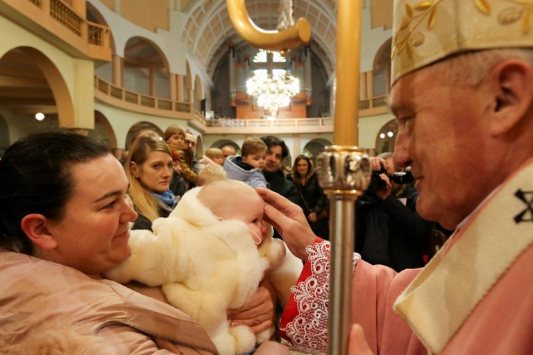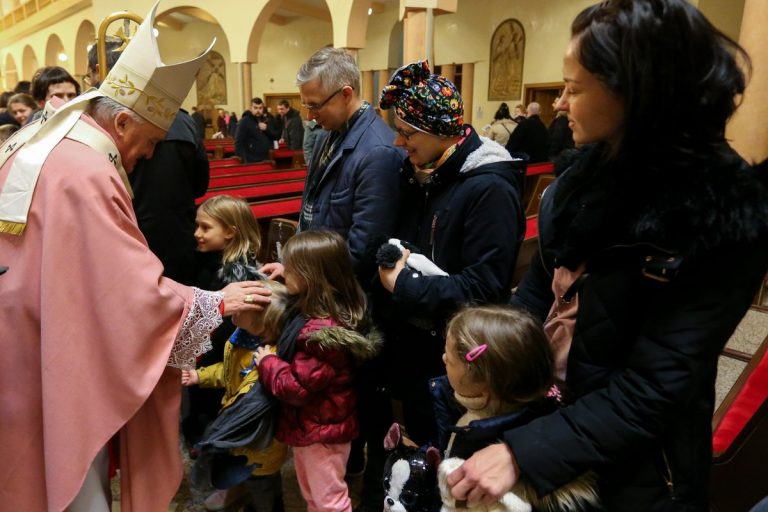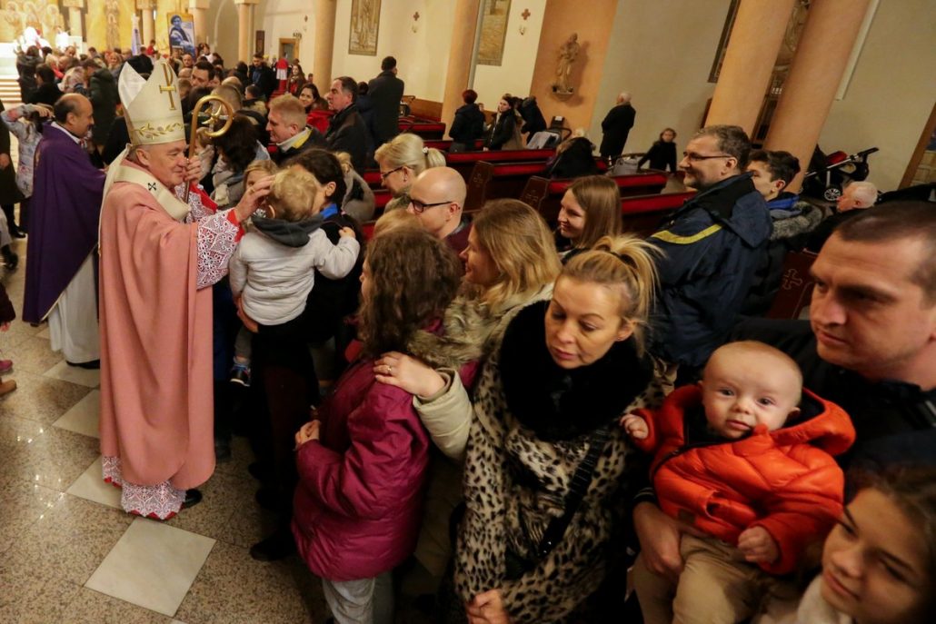 We Mszy św. pod przewodnictwem kard. Kazimierza Nycza wzięli udział rodzice z dziećmi ochrzczonymi w minionym roku, aby dziękować Bogu za dar życia i łaskę Chrztu św. Po Mszy metropolita warszawski udzielił dzieciom specjalnego błogosławieństwa