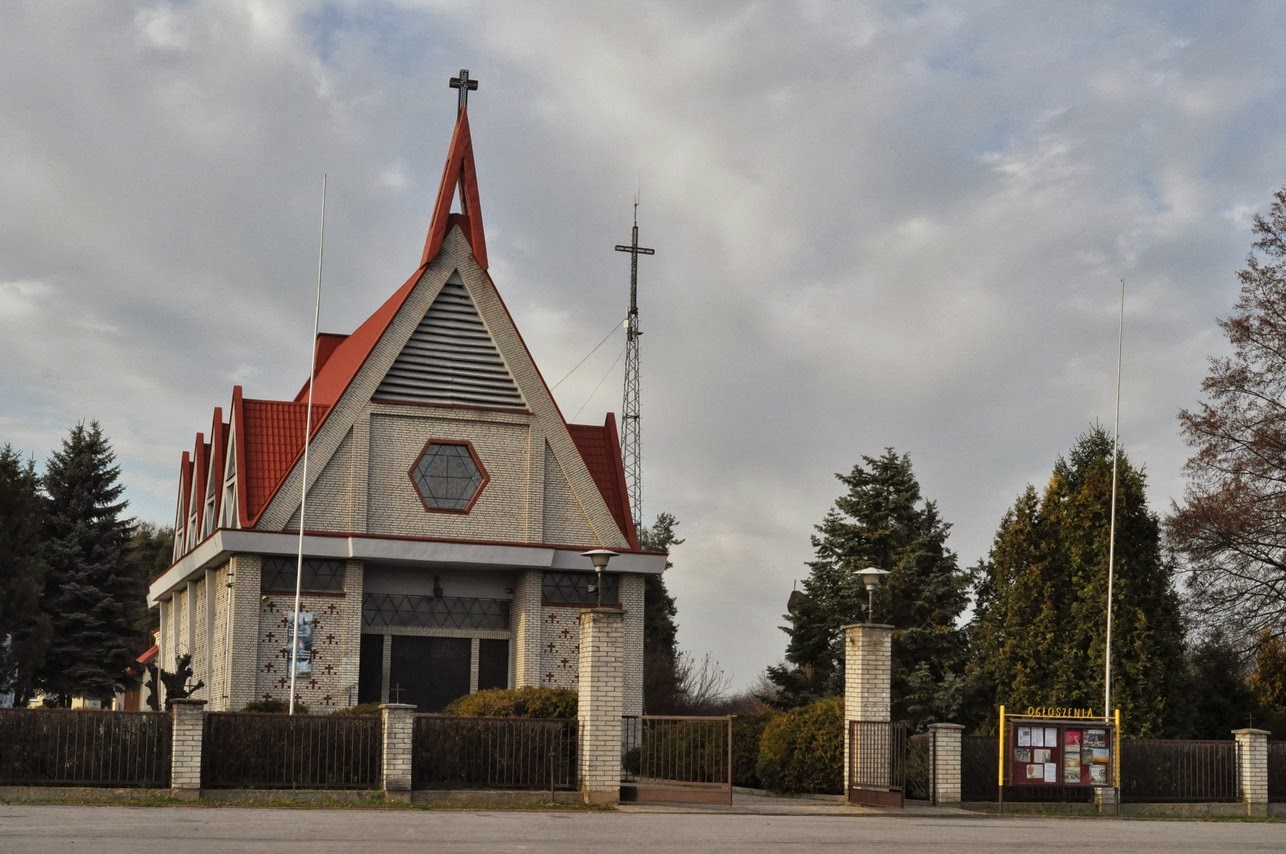 Parafia została erygowana dnia 14 grudnia 1974 roku. Dzięki determinacji parafian, dziś wierni gromadzą się w jednonawowej przestronnej świątyni. Z wiszącego w prezbiterium, nad tabernakulum, krzyża modlitw wysłuchuje umęczony Chrystus, któremu towarzyszą Matka Boża i św. Jan Chrzciciel. Na modlitwę zaprasza głos wiszących w dzwonnicy dzwonów o imionach: „Jan Paweł”, „Jan Chrzciciel” oraz „Maryja”.