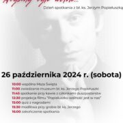 Serdecznie zapraszamy środowisko młodzieży i studentów do uczestnictwa w spotkaniach organizowanych w parafii św. Stanisława Kostki na Warszawskim Żoliborzu z okazji 40 rocznicy męczeńskiej śmierci ks. Jerzego Popiełuszki