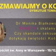Spotkanie z cyklu „Porozmawiajmy o Kościele” poprowadzi publicysta Tomasz Terlikowski, a jego gościem będzie Monika Białkowska, teolog fundamentalny.