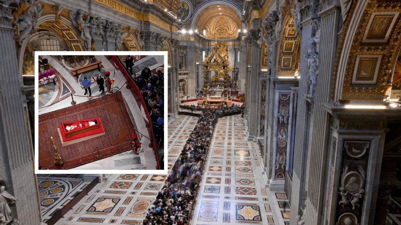 Otwarta trumna z ciałem papieża będzie wystawiona dla wiernych do piątku wieczorem. W sobotę na placu przed bazyliką watykańską sprawowana będzie Msza św. pogrzebowa, a następnie kondukt żałobny przejedzie przez Rzym, aż do bazyliki Matki Bożej Większej, gdzie zgodnie z wolą zawartą w testamencie Franciszek zostanie pochowany. By ułatwić udział w tym historycznym wydarzeniu władze Rzymu zmobilizowały dodatkowe oddziały policji i obrony cywilnej, która rozdaje m.in. wodę pielgrzymom stojącym w długich kolejkach i zapewnia pomoc medyczną.