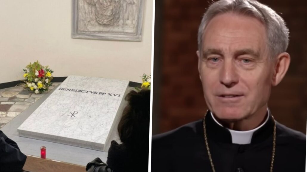 Abp Gänswein w czasie mszy przy grobie Benedykta XVI: choć odczuwamy jego brak, jest obecny duchowo