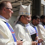 „Zostawcie tutaj swoje prośby, bo kto nam pomoże, jak nie Matka Boża” – mówił bp Wojciech Osial do pielgrzymów podczas porannej mszy przy sanktuarium w Miedniewicach.