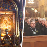 Mężczyźni niemal z całej Polski przyjechali do Gietrzwałdu, aby wspólnie modlić się przed wizerunkiem Matki Bożej Gietrzwałdzkiej.