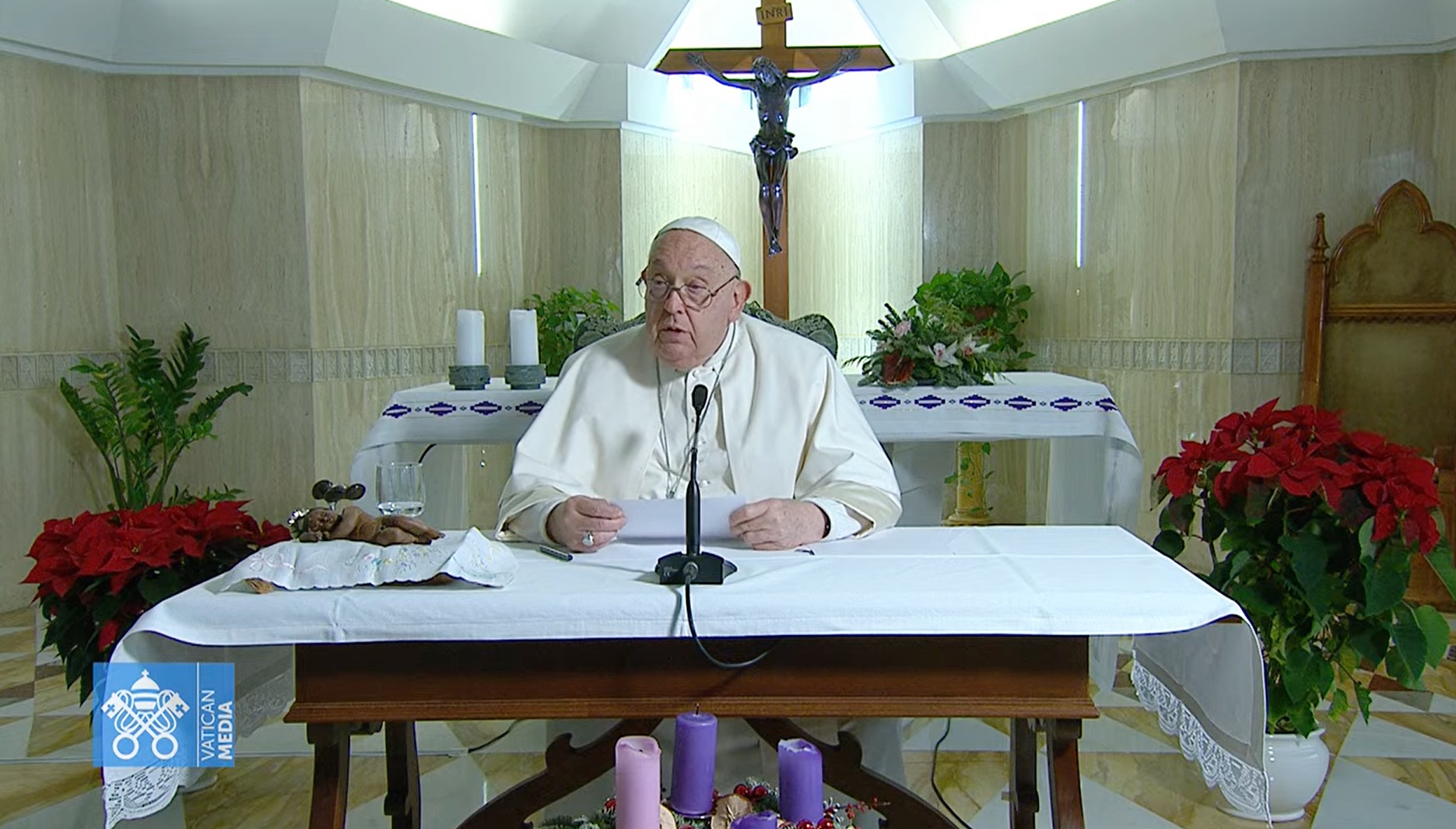 Ojciec Święty zgodnie z rzymską tradycją pobłogosławił figurki Dzieciątka Jezus, które zostaną umieszczone w bożonarodzeniowych żłóbkach Wiecznego Miasta. Jednocześnie zachęcił do dziękowania Bogu za dar Jezusa, który dla nas stał się człowiekiem i do postawienia sobie pytania: „Czy wysławiam Go i błogosławię za każde rodzące się dziecko? Czy wspieram świętą wartość życia dzieci i jej bronię, od chwili ich poczęcia w łonie matki?”.