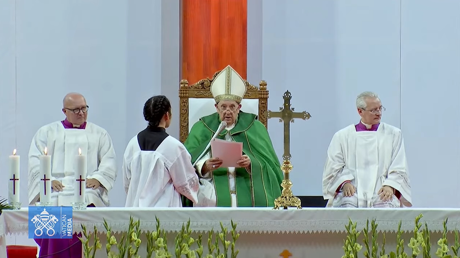 W wygłoszonej po włosku homilii, nawiązując do stepowego, pustynnego krajobrazu Mongolii, papież przypomniał, że drogą, na której możemy ugasić nasze pragnienie jest droga miłości, którą Jezus przebył aż do końca, aż po krzyż, droga tracenia swego życia, aby je odnaleźć.