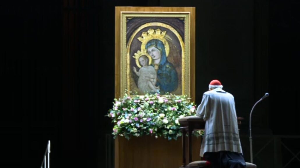 Dziewico Maryjo, Matko Kościoła i Matko nasza, Uzdrowienie chorych! Zebraliśmy się na Placu Świętego Piotra, żeby skierować naszą ufną i zgodną modlitwę, by Bóg sprawił, że Papież Franciszek jak najszybciej wznowi swoją apostolską posługę w pełni sił fizycznych I z tym charakteryzującym go dynamizmem duszpasterskim. Odmawiając Różaniec przyzywamy Twojego macierzyńskiego wstawiennictwa, O łaskawa, O litościwa, O słodka Panno Maryjo! – modlił się.