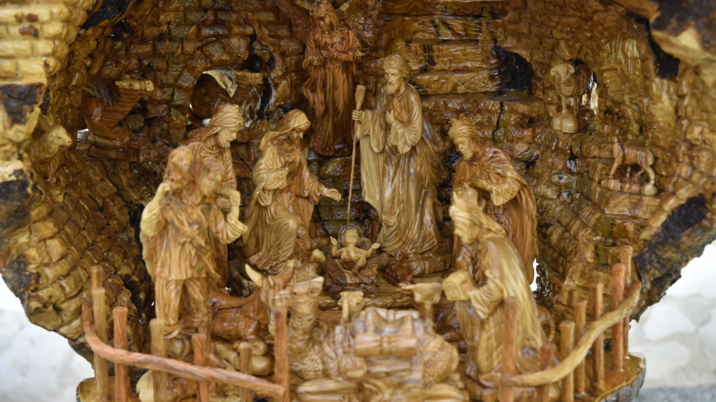 Szopka, która znalazła się na Jasnej Górze, została wyrzeźbiona w trzystuletnim drewnie oliwnym nieopodal Betlejem, w miejscu nazywanym potocznie „Polem Pasterzy”. Wykonał ją jeden z największych rzeźbiarzy Monir Tueme z Bayt Sahur. Po ścięciu drzewo schło 2 lata zanim zaczął w nim rzeźbić.
