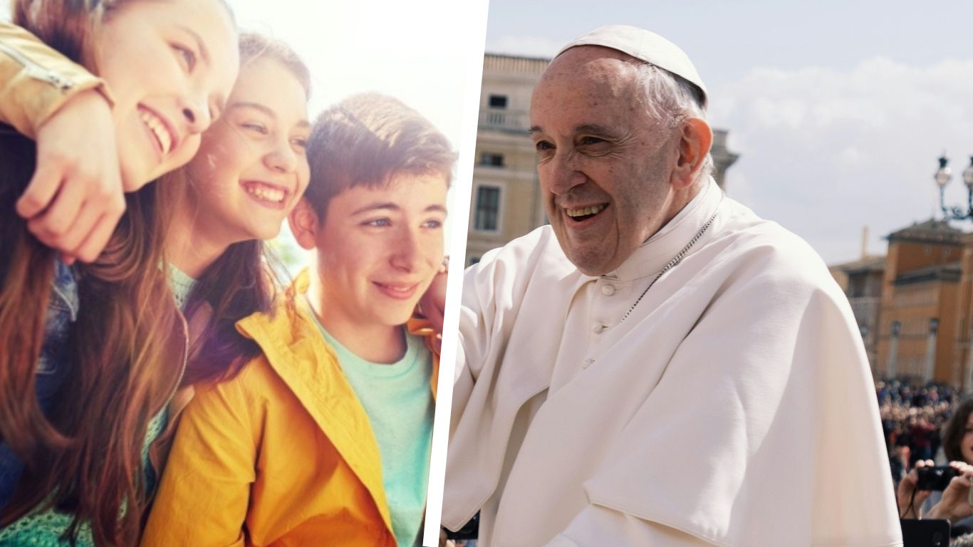 Na drogę zostawiam wam jeszcze jeden sugestywny obraz. Przybywając do Bazyliki Świętego Piotra w Rzymie, przechodzimy przez plac otoczony kolumnadą, wykonaną przez wielkiego architekta i rzeźbiarza Gian Lorenzo Berniniego. Kolumnada, jako całość, wygląda jakby obejmowała plac: są to dwa otwarte ramiona Kościoła, naszej matki, która wita wszystkie swoje dzieci! W tym nadchodzącym Roku Świętym Nadziei, zapraszam was wszystkich do doświadczenia przytulenia przez miłosiernego Boga, do doświadczenia Jego przebaczenia, darowania wszystkich naszych „wewnętrznych długów”, jak to było w tradycji jubileuszy biblijnych. Przyjęci przez Boga i odrodzeni w Nim, wy również stajecie się otwartymi ramionami dla wielu waszych przyjaciół i rówieśników, którzy potrzebują poczuć, poprzez waszą akceptację, miłość Boga Ojca. Niech każdy z was da „choćby tylko uśmiech, gest przyjaźni, braterskie spojrzenie, szczere wysłuchanie, bezinteresowną posługę, wiedząc, że w Duchu Jezusa może to stać się owocnym ziarnem nadziei dla tych, którzy je przyjmują” (tamże, 18), stając się w ten sposób niestrudzonymi misjonarzami radości.