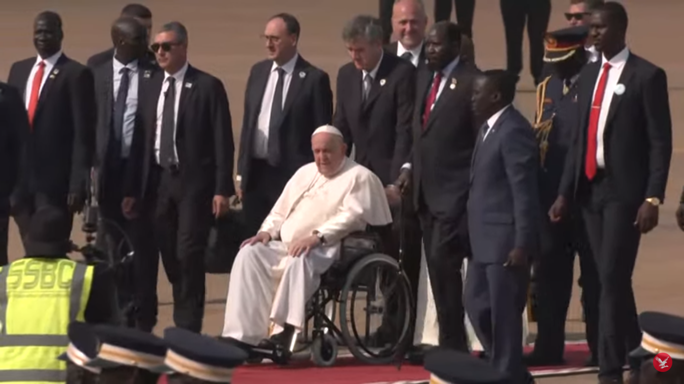 Na lotnisku w Dżubie na pokład samolotu weszli, oprócz nuncjusza apostolskiego w Sudanie Południowym, również: anglikański arcybiskup Canterbury Justin Welby i moderator Zgromadzenia Ogólnego prezbiteriańskiego Kościoła Szkocji pastor Iain Greenshields, z którymi Franciszek odbędzie ten etap swej podróży.