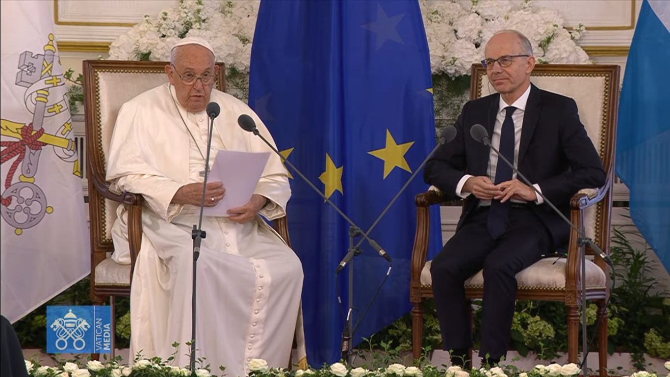 Na wstępie przemówienia papież Franciszek zwrócił uwagę na specyficzne położenie w Europie i rolę Luksemburga w budowaniu jedności starego kontynentu. Zaznaczył, że u podstaw znaczącej roli tego małego kraju w Europie tkwi poszanowanie godności osoby ludzkiej i obrona jej podstawowych wolności. Cytując słowa św. Jana Pawła II uwypuklił rolę Luksemburga jako ośrodka intensywnej wymiany i współpracy międzynarodowej. Zaapelował o ustanowienie „relacji solidarności między narodami, aby wszyscy mogli stać się uczestnikami i protagonistami starannego projektu integralnego rozwoju”.