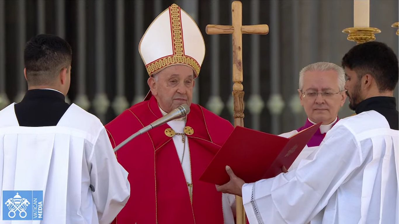 Franciszek przewodniczył liturgii Niedzieli Palmowej na placu św. Piotra w Watykanie, którą przy ołtarzu sprawował prefekt Dykasterii ds. Kościołów Wschodnich kard. Claudio Gugerotti wraz z dziekanem i wicedziekanem Kolegium Kardynalskiego, kardynałami: Giovannim Battistą Re i Leonardo Sandrim.