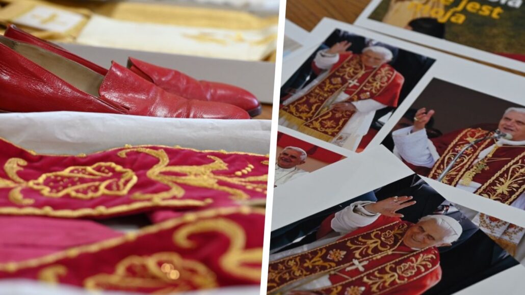 Stuła, ornat, mitra i… buty Benedykta XVI trafiły do Polski. Niezwykłe pamiątki będzie można zobaczyć
