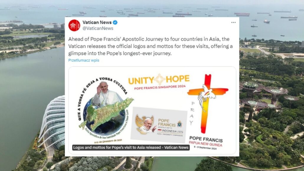 Wiara, modlitwa, współczucie, braterstwo, harmonia, nadzieja – to tematy, które pojawiają się w hasłach i logach podróży apostolskiej – najdłuższej tego pontyfikatu – którą papież Franciszek odbędzie w dniach od 2 do 13 września do Indonezji, Papui Nowej Gwinei, Timoru Wschodniego i Singapuru. Opublikowało je watykańskie biuro prasowe.