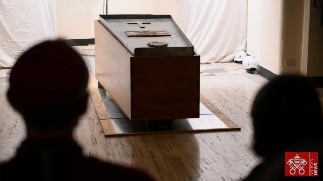 Dziś po oficjalnych uroczystościach na placu św. Piotra trumnę z ciałem Benedykta XVI przeniesiono do Grot Watykańskich. Tam cyprysowa trumna została opieczętowana przez Kapitułę św. Piotra, Prefekturę Domu Papieskiego i Urząd Celebracji Liturgicznych, a następnie zamknięta w dwóch kolejnych trumnach: cynkowej i drewnianej.
