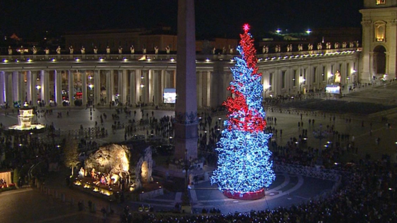 Watykan już w świątecznej odsłonie. Na placu św. Piotra odsłonięto szopkę i zapalono choinkę