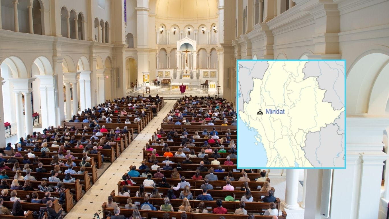 Diecezja Mindat liczy zaledwie 14,3 tys. wiernych (wśród 360 tys. mieszkańców), 23 parafie, 48 księży diecezjalnych, 3 zakonnych i 21 sióstr zakonnych, 7 kleryków i 40 uczniów w niższym seminarium.