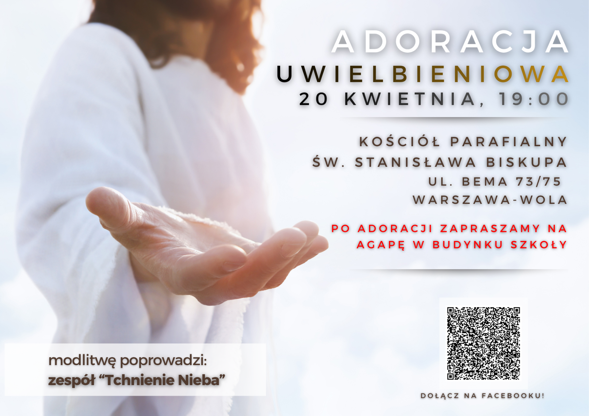 Przyjdź uwielbiaj z nami Pana! Po adoracji zapraszamy na agapę do budynku szkoły katolickiej.
