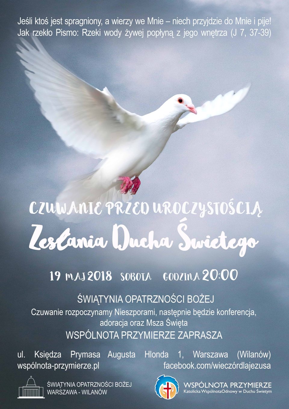 Już w najbliższą sobotę będziemy czuwać przed uroczystością Zesłania Ducha Świętego! Startujemy o godz. 20.00.
