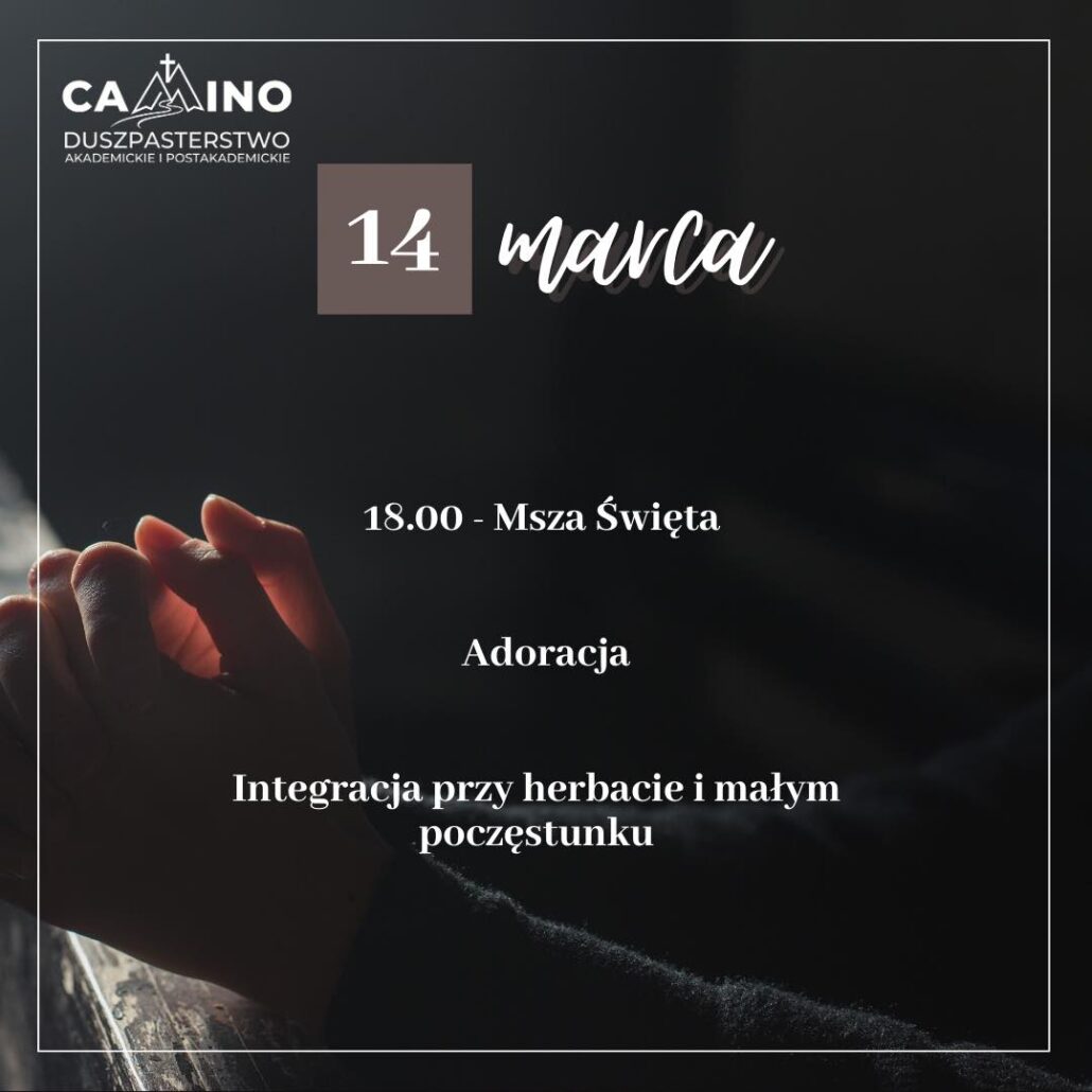 Adoracja Najświętszego Sakramentu odbędzie się po Mszy Świętej o godz. 18:00. Po adoracji spotkanie integracyjne, które odbędzie się w Sali Roma, naprzeciwko domu parafialnego – wejście od ul. Świętej Barbary
