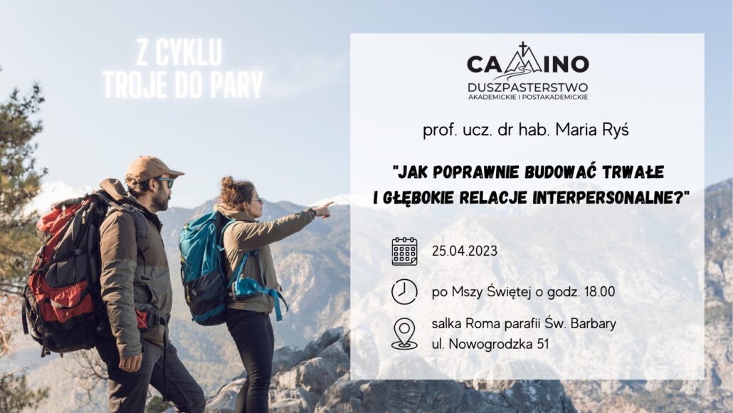 Zapraszamy na kolejne spotkanie z Gościem w ramach cyklu „Troje do pary” organizowanego przez Duszpasterstwo Akademickie i Postakademickie Camino!