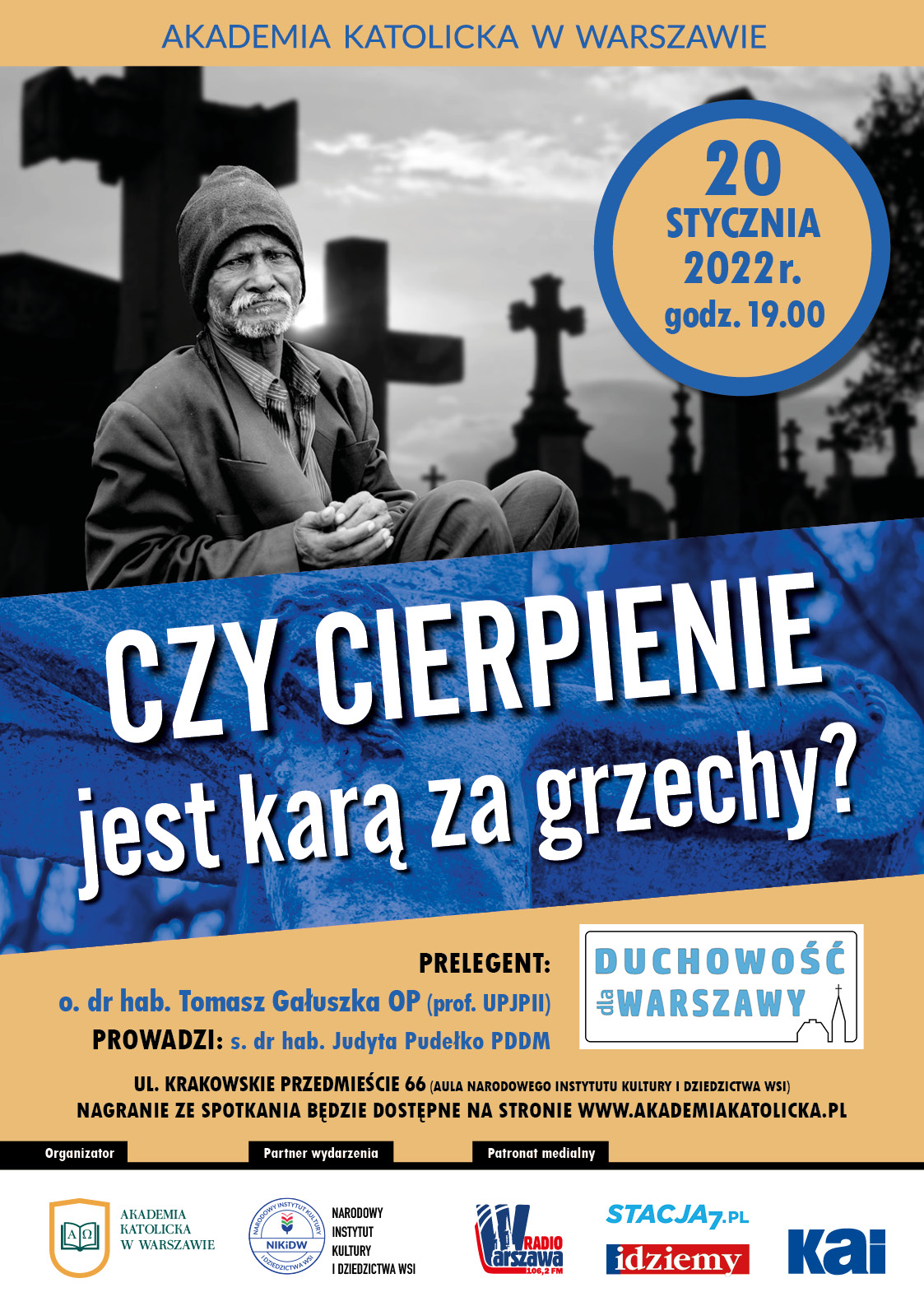 Najbliższy wykład otwarty z cyklu "Duchowość dla Warszawy" podejmie temat „Czy cierpienie jest karą za grzechy?”. Spotkanie odbędzie się 20 stycznia o godz. 19.00.