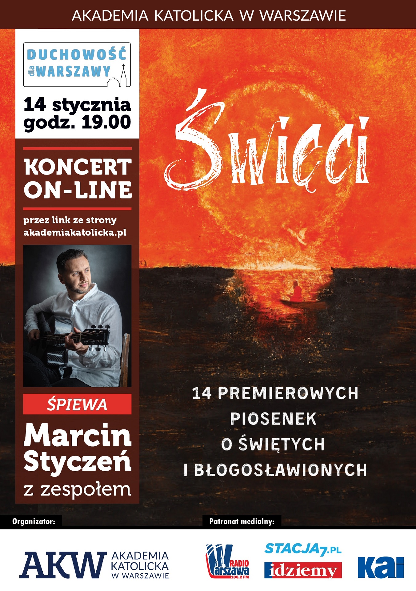 Koncert odbędzie się online 14 stycznia (czwartek), o godzinie 19.00 i będzie transmitowany w internecie. Link do transmisji będzie można znaleźć na stronie internetowej uczelni: akademiakatolicka.pl.