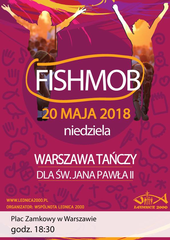 „Każdego roku tłumy ludzi spotykają się na placach i ulicach miast, aby wspólnie – tańcem i muzyką – wychwalać Pana. Świętując, chcemy zaznaczyć naszą pamięć o Janie Pawle II. Błogosławił dziełu LEDNICA 2000 od samego początku, dlatego data akcji FISHMOB jest zawsze bliska dniu rocznicy jego urodzin – 18 maja” – podkreślają organizatorzy akcji.