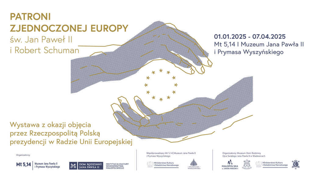 „Wystawa Św. Jan Paweł II i Robert Schuman. Patroni zjednoczonej Europy” ma na celu upowszechnienie wiedzy o papieżu Polaku i jego działaniach na rzecz integracji Starego Kontynentu oraz przypomnienie o chrześcijańskich korzeniach wspólnoty europejskiej, których uosobieniem jest Robert Schuman. Pokazuje wizję zjednoczonej Europy wg św. Jana Pawła II oraz Sługi Bożego Roberta Schumana przypominając działania, jakie obaj podejmowali na rzecz wspólnoty państw naszego kontynentu. Szczególny akcent został położony na ukazanie kulturowych i cywilizacyjnych fundamentów europejskiej tożsamości, jakimi pozostają wartości chrześcijańskie. Ekspozycja została przygotowana przez Muzeum Domu Rodzinnego Jana Pawła II w Wadowicach w ramach programu Ministerstwa Kultury i Dziedzictwa Narodowego Kultura dostępna. Dotychczas była ona prezentowana w wersji francusko-angielskiej w Belgii, Francji i Luksemburgu – po raz pierwszy będzie pokazywana w wersji polsko-angielskiej (Św. Jan Paweł II i Robert Schuman. Patroni zjednoczonej Europy/ Saint John Paul II & Robert Schuman. The Patrons of United Europe) właśnie w naszym Muzeum.