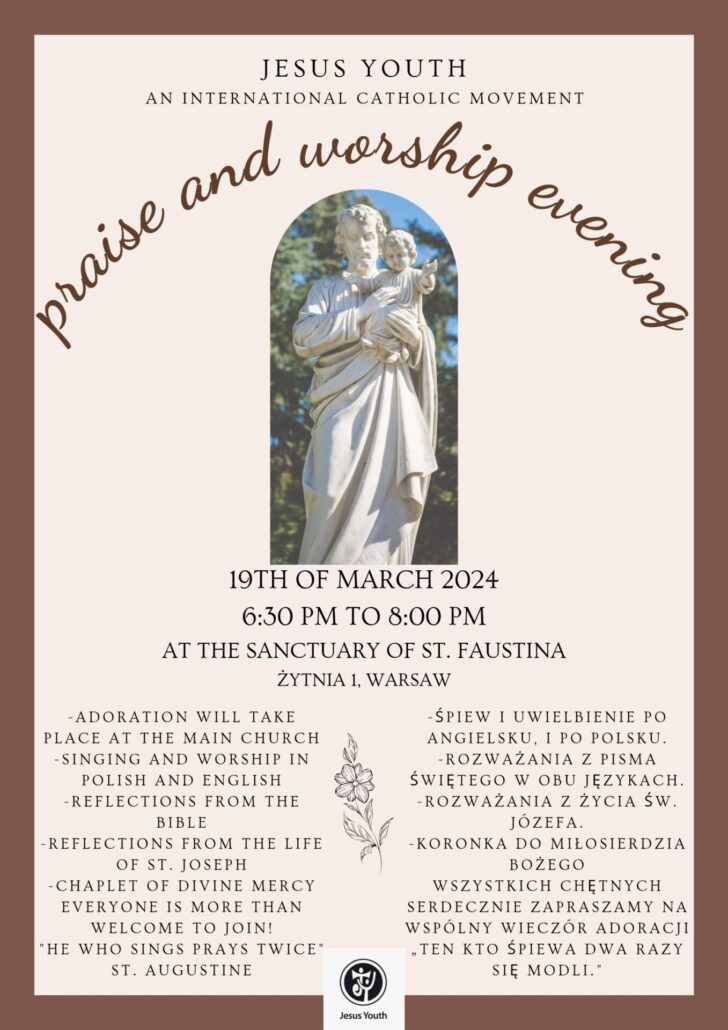 Jesus Youth – an international Catholic movement, will be leading a „praise and worship” evening, on Tuesday 19th of March, at 18:30-20:00.