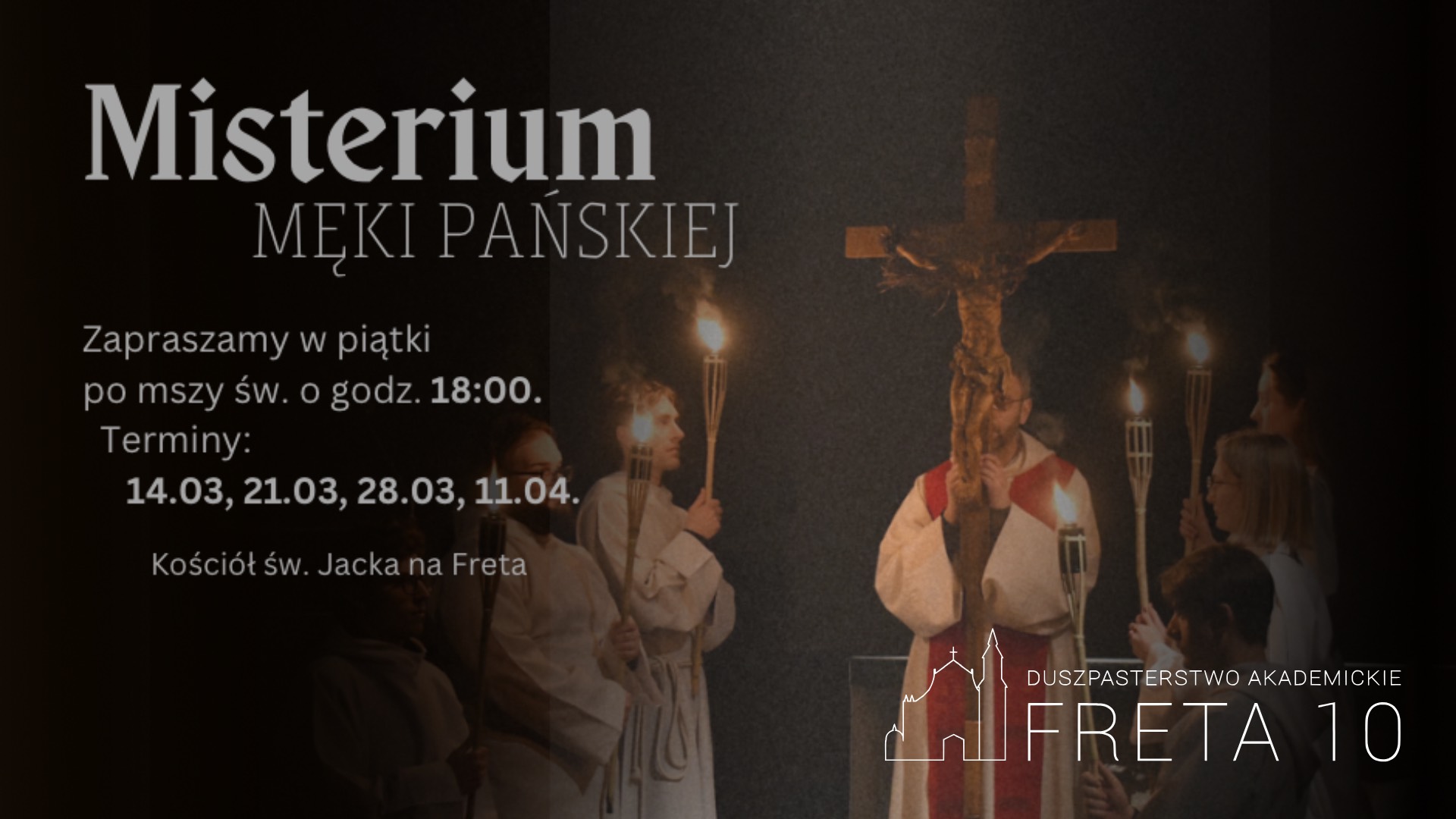 W piątki Wielkiego Postu zapraszamy do kościoła św. Jacka na Freta na Misteria Męki Pańskiej. Te wyjątkowe nabożeństwa pasyjne od wielu lat przygotowują i organizują studenci z Duszpasterstwa Akademickiego "Freta 10"