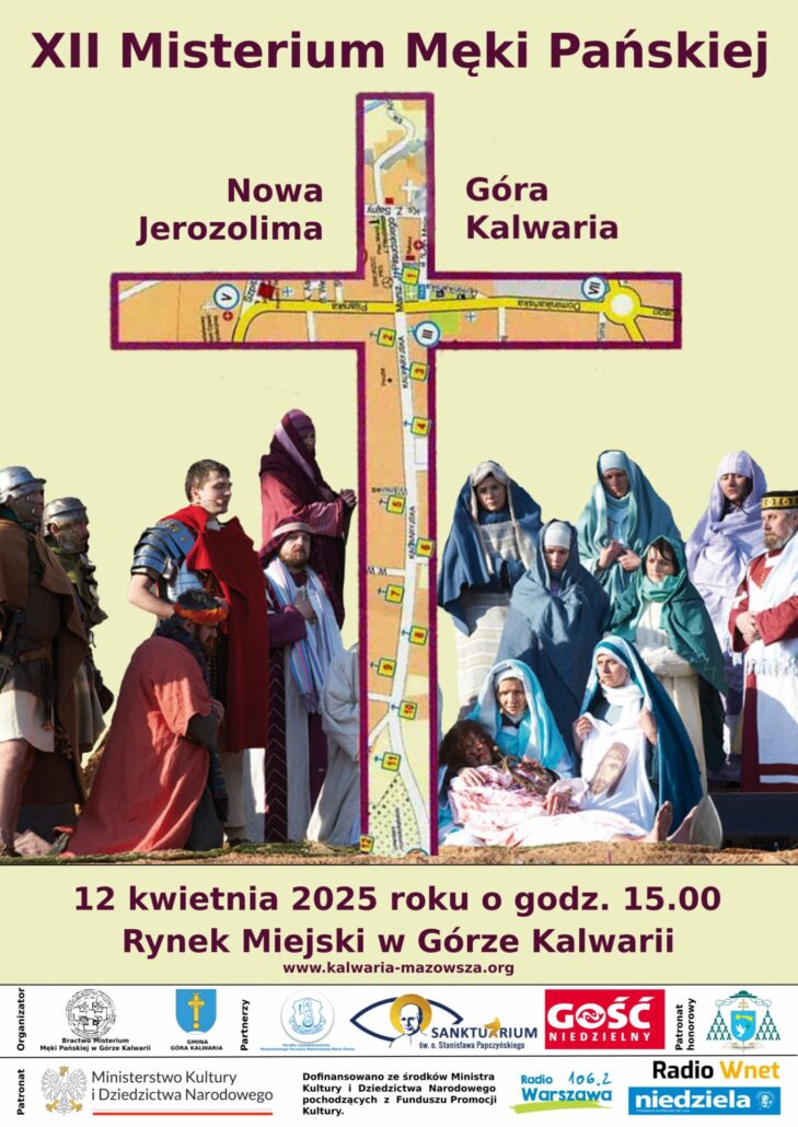 W sobotę 12 kwietnia w Górze Kalwarii odbędzie się Misterium Męki Pańskiej. Zwyczaj ten, wznowiony kilkanaście lat temu po 200-letniej przerwie, nawiązuje do misteriów pasyjnych, które były odgrywane w Nowej Jerozolimie - jak przeszłości nazywało się to podwarszawskie miasto. Inscenizacja jest największym na Mazowszu misterium pasyjnym. Początek o godz. 15.00 na Rynku Miejskim