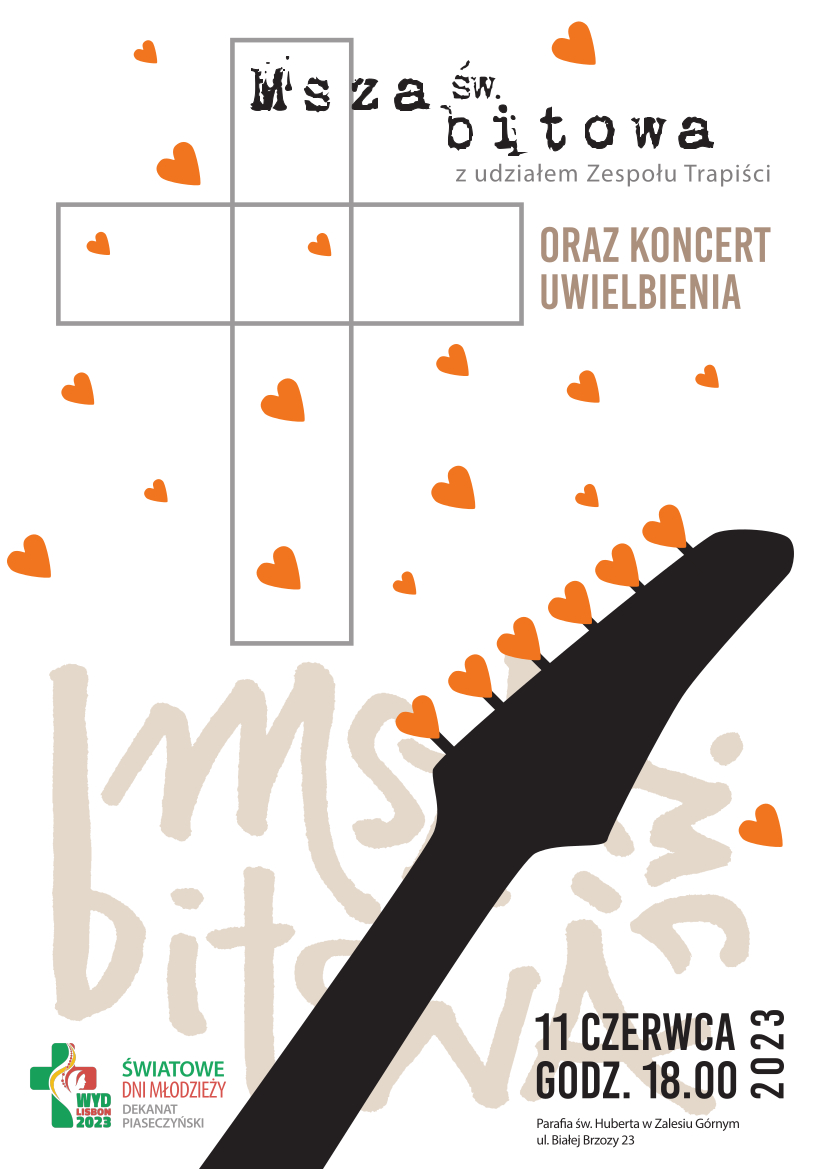 "Zapraszamy na Mszę świętą bitową z udziałem Zespołu Trapiści oraz koncert uwielbienia. Jest to dobra okazja, aby duchowo przygotować się na wyjazd na Światowe Dni Młodzieży" - zaprasza parafia w Zalesiu Górnym
