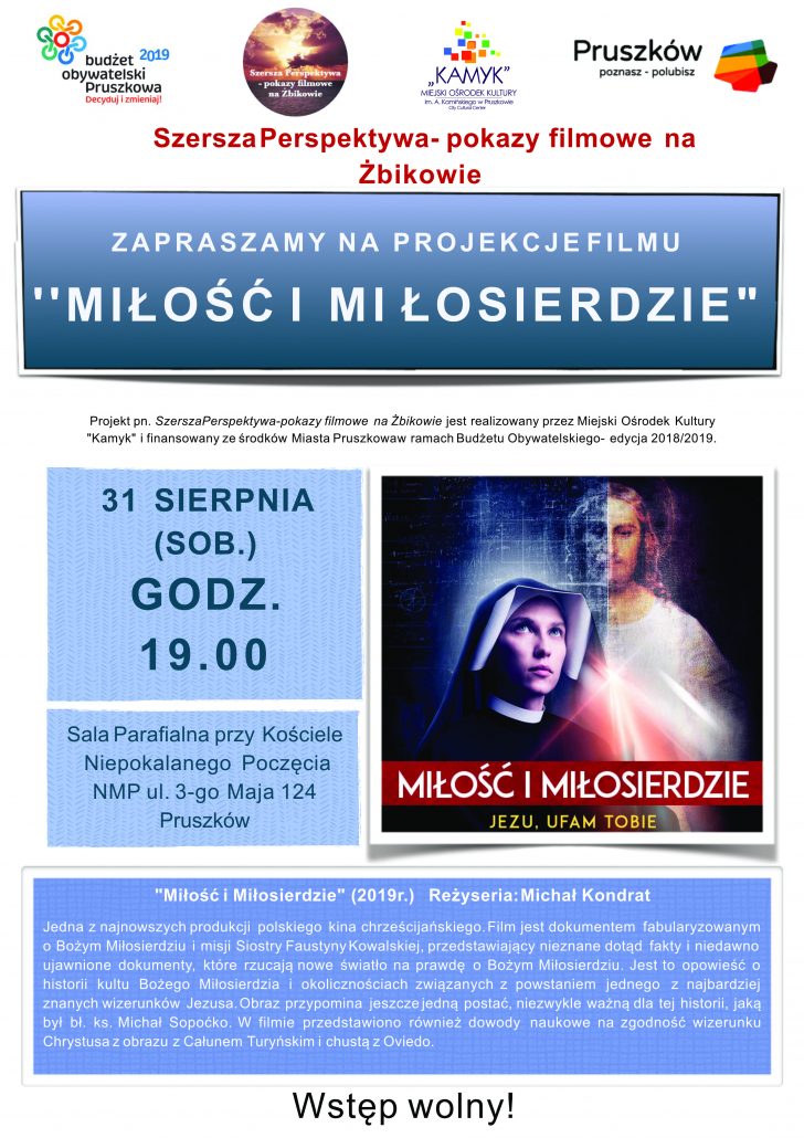Film opowiada o historii s. Faustyny i kulcie Bożego Miłosierdzia. Zostanie wyświetlony w sobotę 31 sierpnia o godz. 19.00 w sali parafialnej, przy parafii Niepokalanego Poczęcia NMP w Pruszkowie.