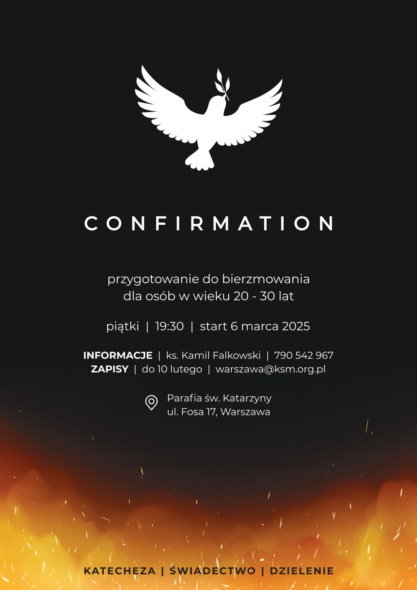 Przygotowanie obejmuje 10 spotkań w wybrane czwartki, w godz. 19:30 – 21:00, w kościele św. Katarzyny na Służewie. Zajęcia obejmują katechezy, świadectwa i spotkania w grupach. Pierwszy zjazd odbędzie się 6 marca. Wymagane są zapisy drogą elektroniczną: warszawa@ksm.org.pl. Uczestnicy otrzymają formularz zgłoszeniowy i terminy zjazdów.