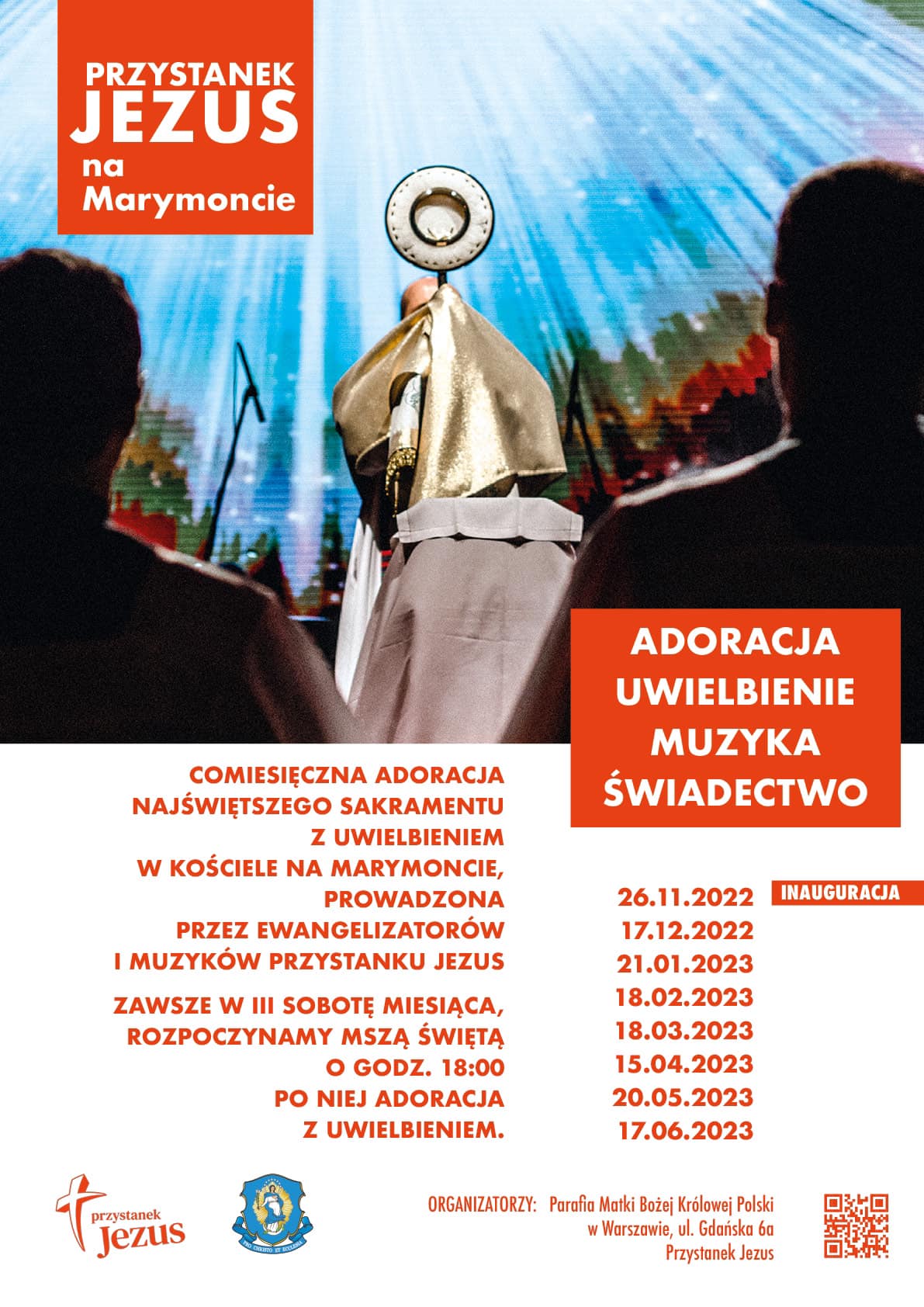 Jako wspólnota modlitewno – ewangelizacyjna wychodzimy do innych ludzi również z propozycją wspólnej modlitwy. Raz w miesiącu pragniemy stanąć w jedności z całą Wspólnotą Kościoła i wspólnie uwielbiać naszego Boga. Spotkanie otwiera Eucharystia, a po niej rozpoczyna się trwające do godz. 20.00 spotkanie z rozbudowaną modlitwą uwielbienia a na zakończenie błogosławieństwo indywidualne Najświętszym Sakramentem.